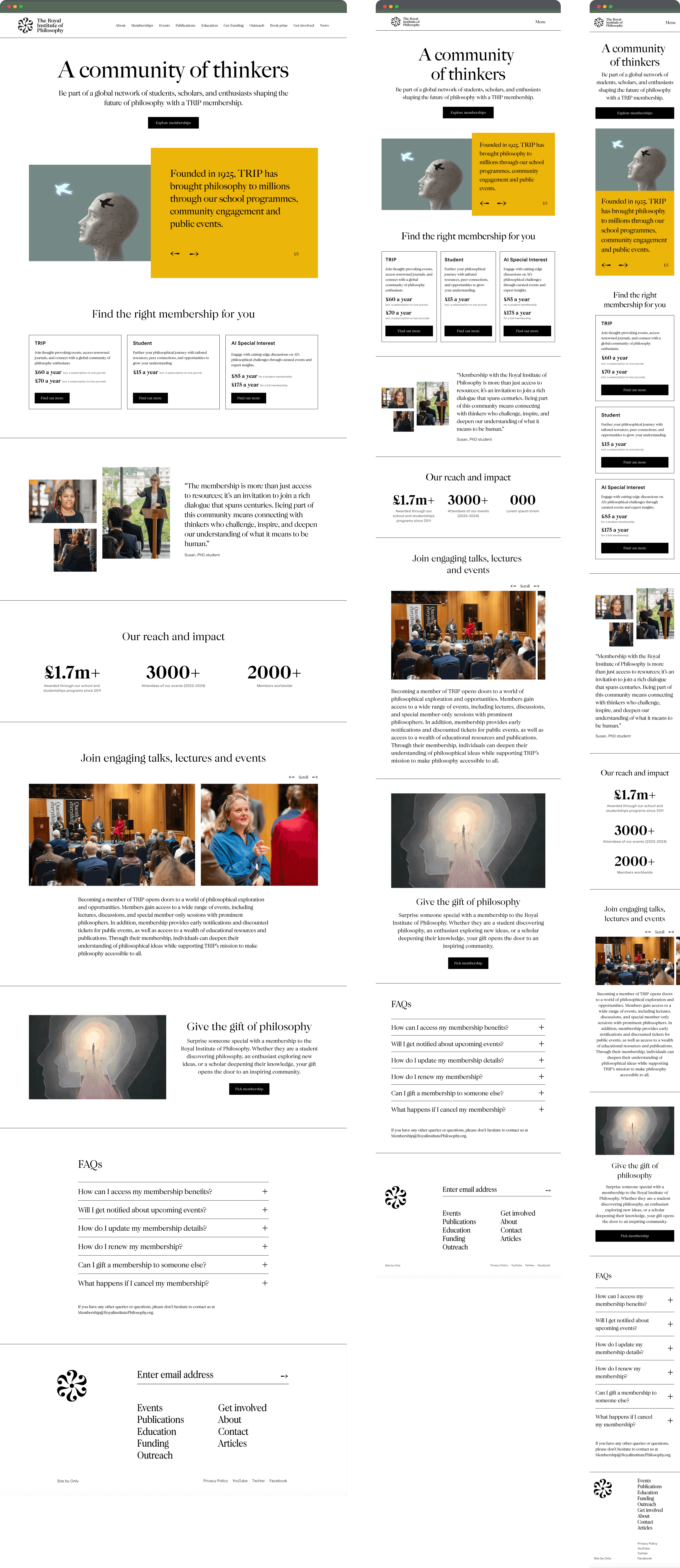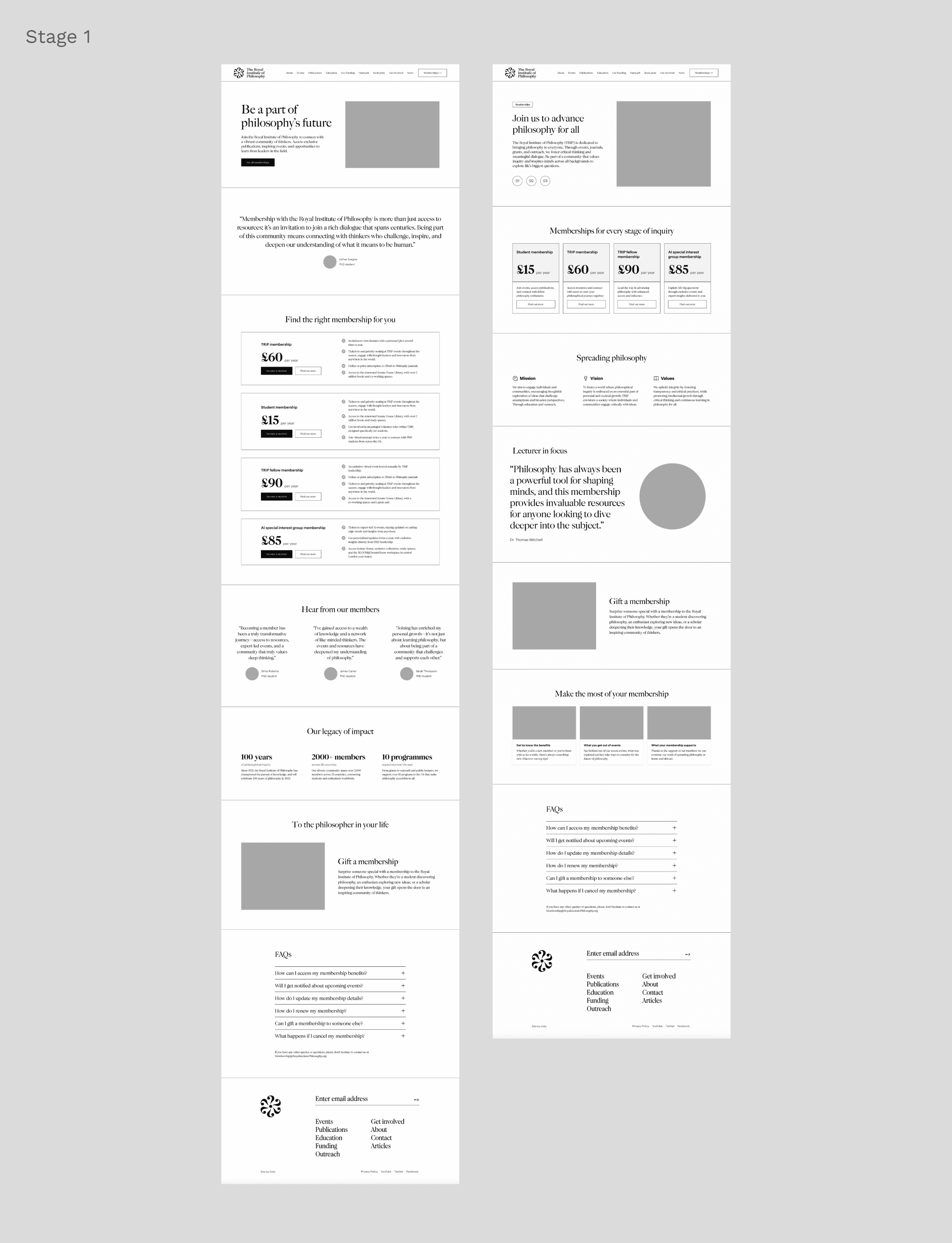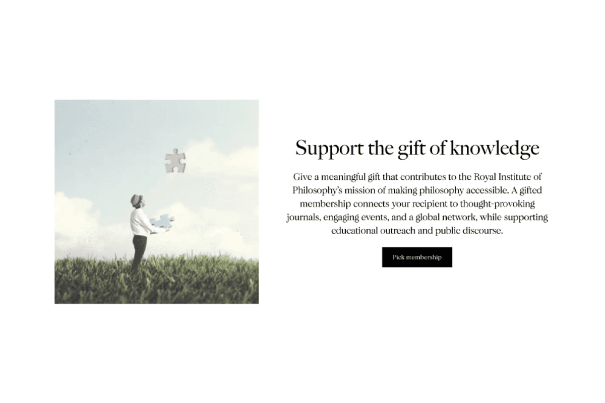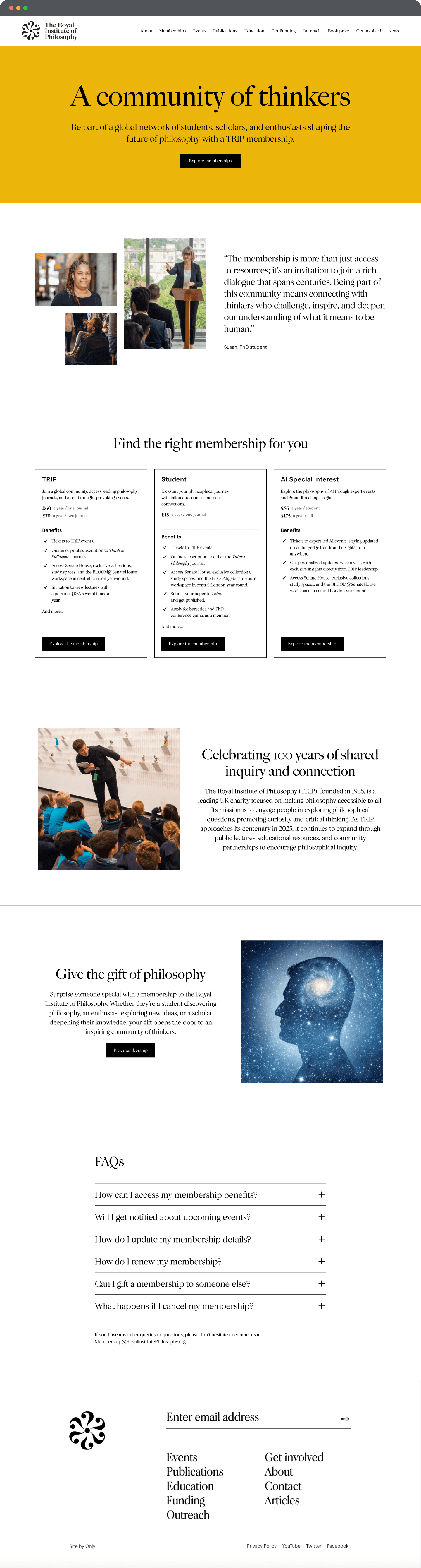 The project delivered a streamlined, user-focused membership funnel for the Royal Institute of Philosophy, centred on the "All Memberships" landing page. This page offers a clear comparison of membership options, linking to detailed pages that highlight benefits, creating a cohesive experience that drives sign-ups and long-term engagement.