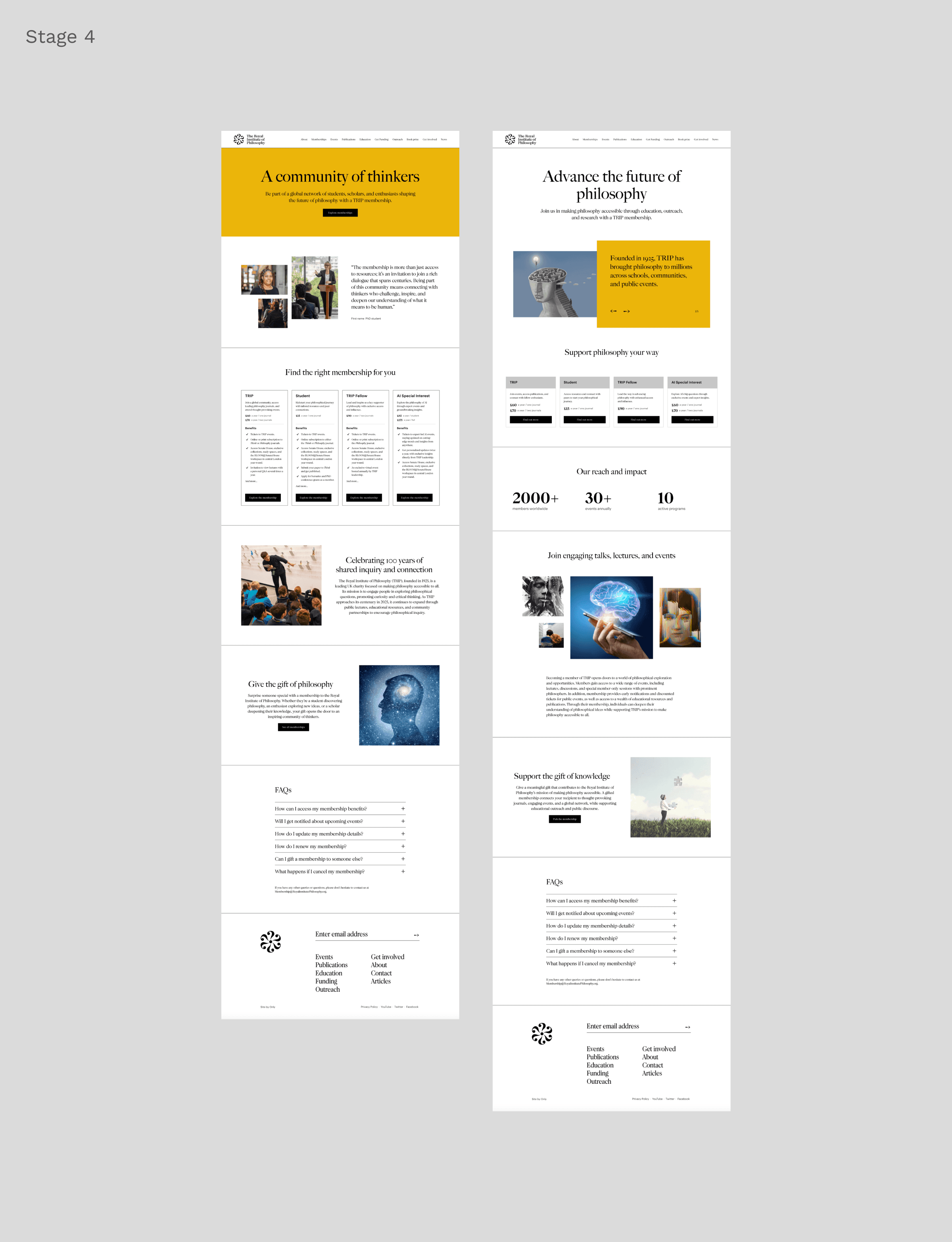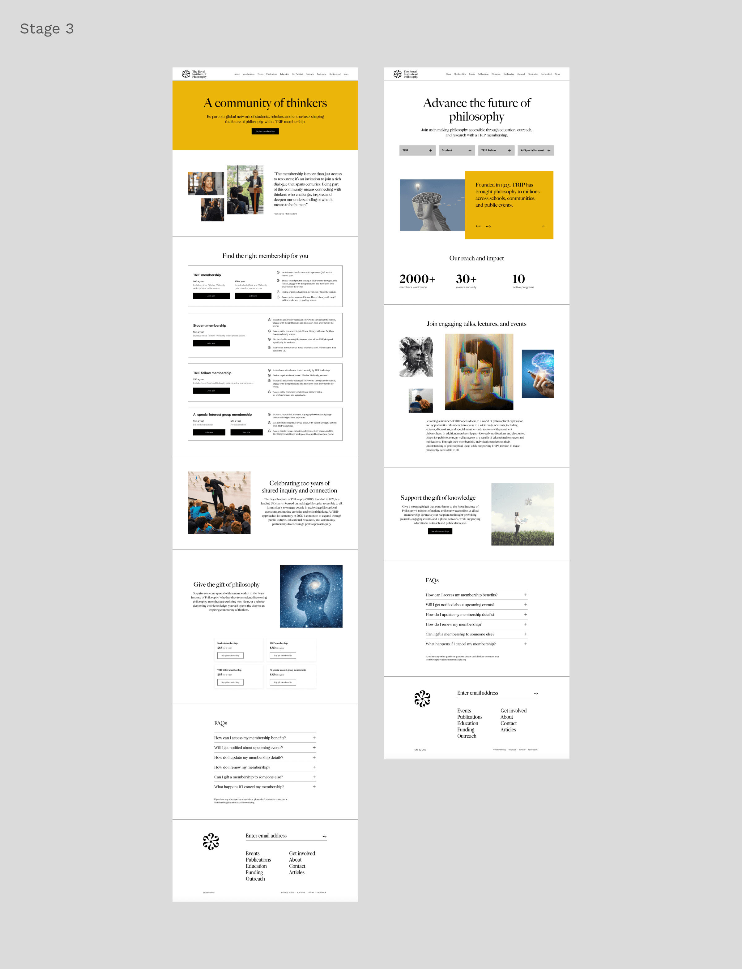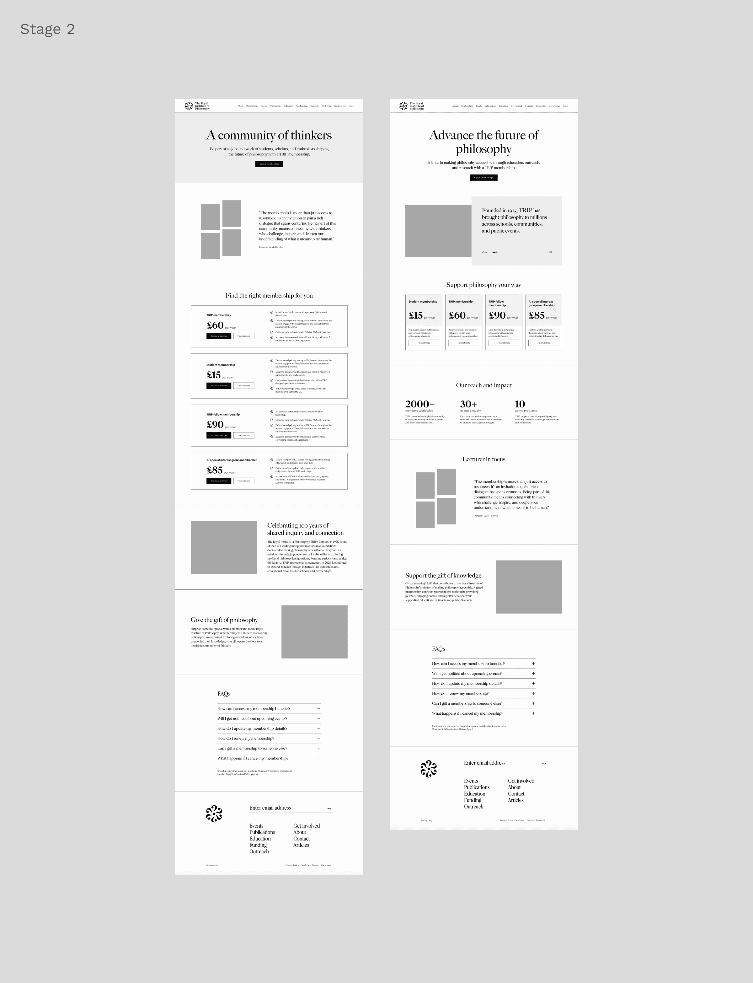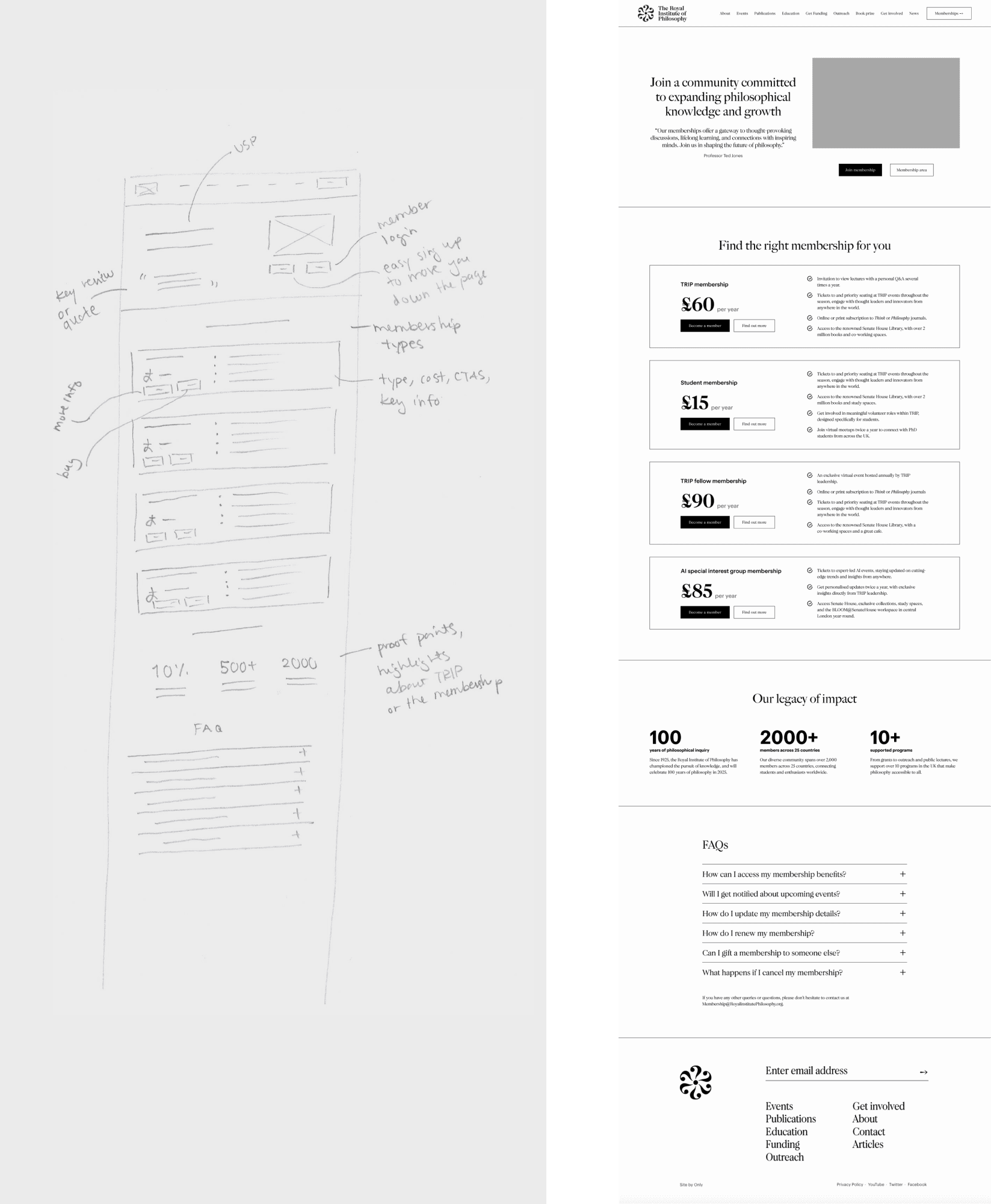 The project delivered a streamlined, user-focused membership funnel for the Royal Institute of Philosophy, centred on the "All Memberships" landing page. This page offers a clear comparison of membership options, linking to detailed pages that highlight benefits, creating a cohesive experience that drives sign-ups and long-term engagement.