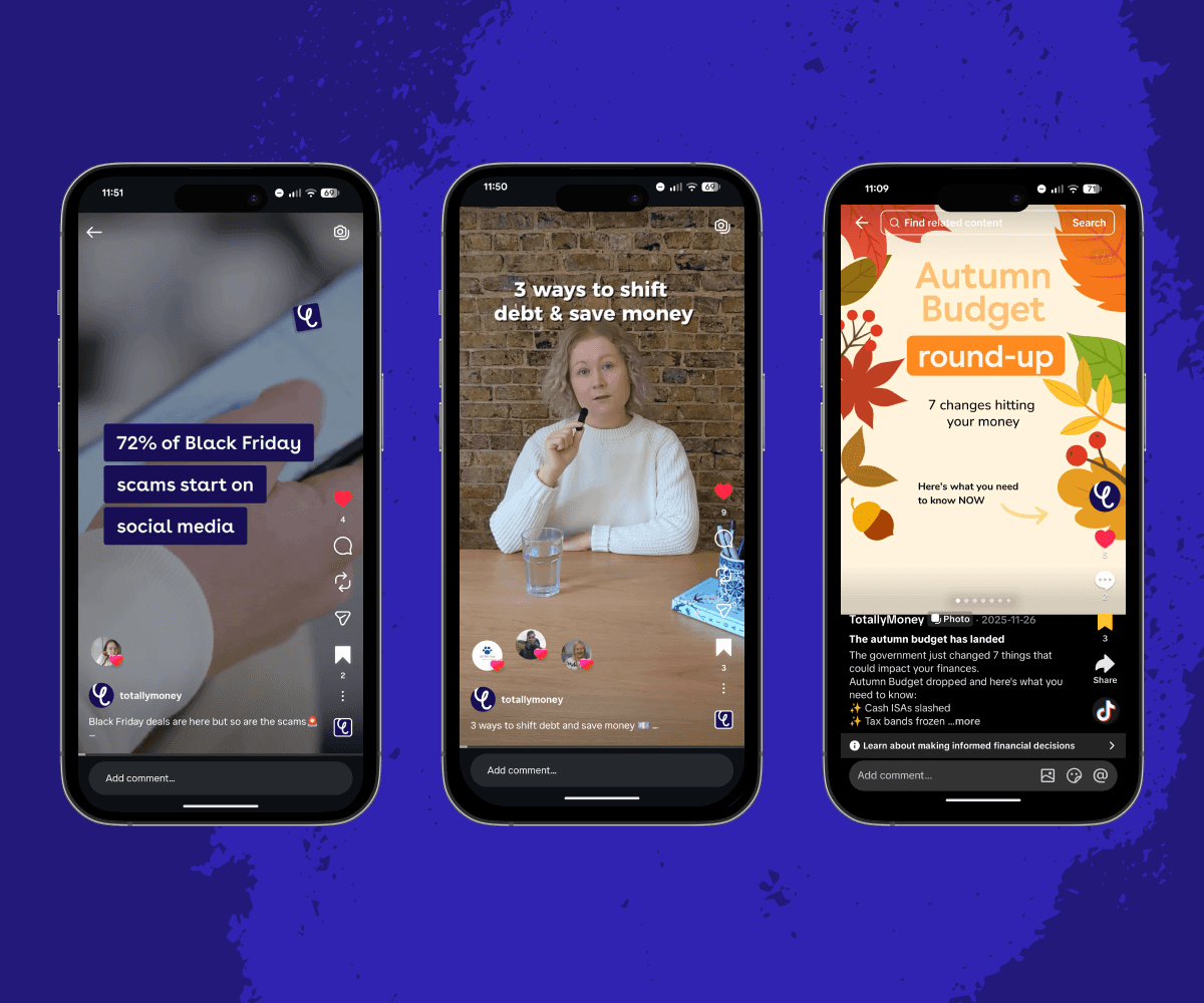 After a six-month pause in organic social activity, TotallyMoney needed to re-establish its presence on Instagram and TikTok. The aim was to relaunch social in a way that felt confident and consistent, rebuilt trust with our audience, and supported the top of the funnel.