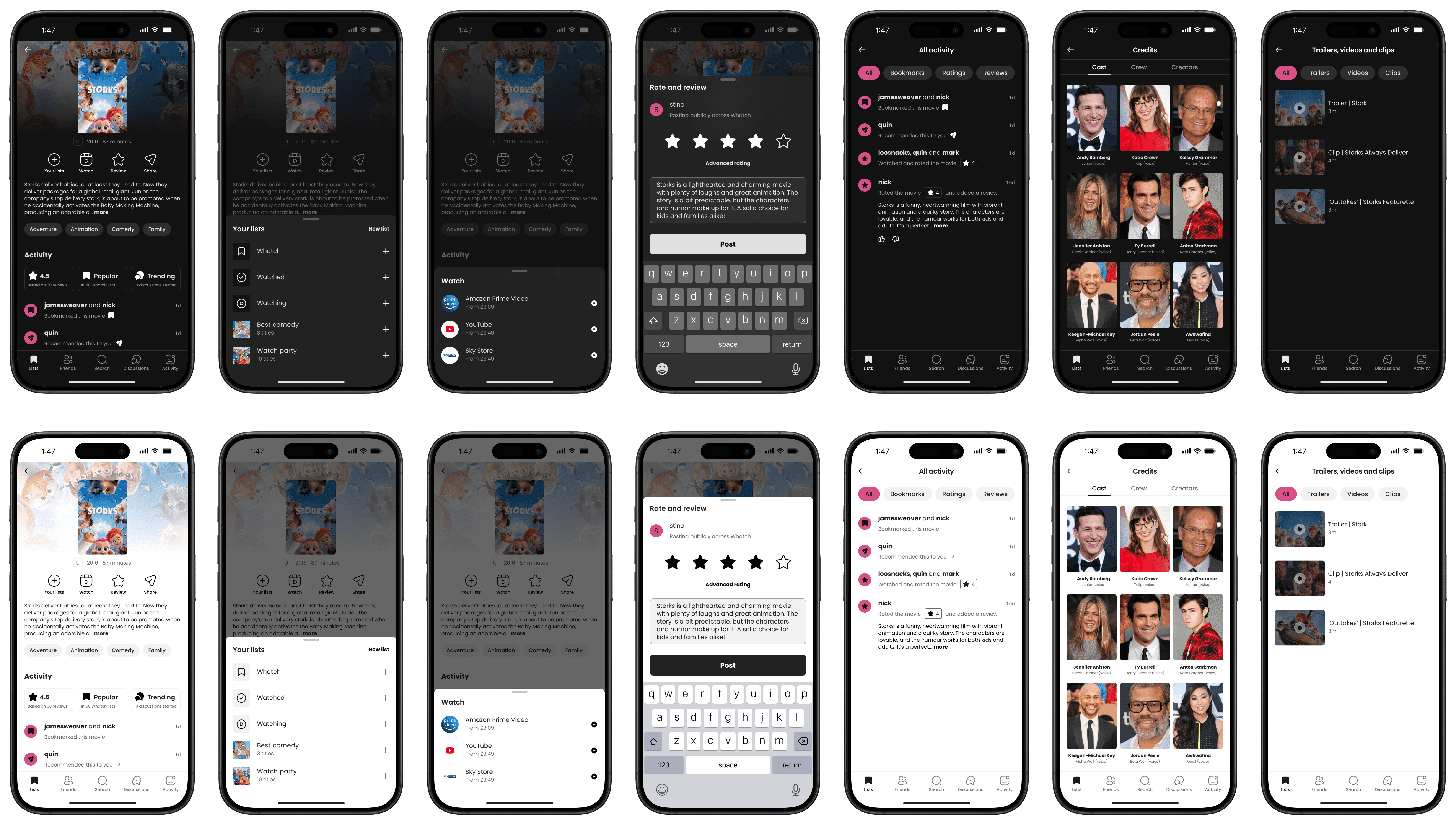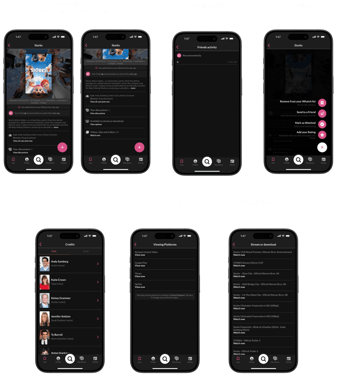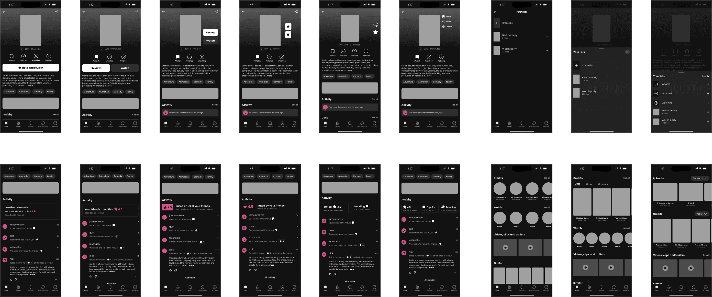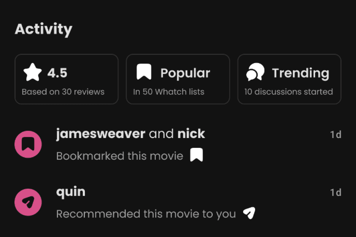 Whatch is a social film and TV discovery app that helps users organise and share their watchlists, using recommendations from friends to reduce decision fatigue and enhance the entertainment discovery experience. User feedback highlights its outdated design and limited engagement opportunities. This redesign aims to transform the title screen into a more dynamic and engaging experience to boost user satisfaction, interaction, and session duration.